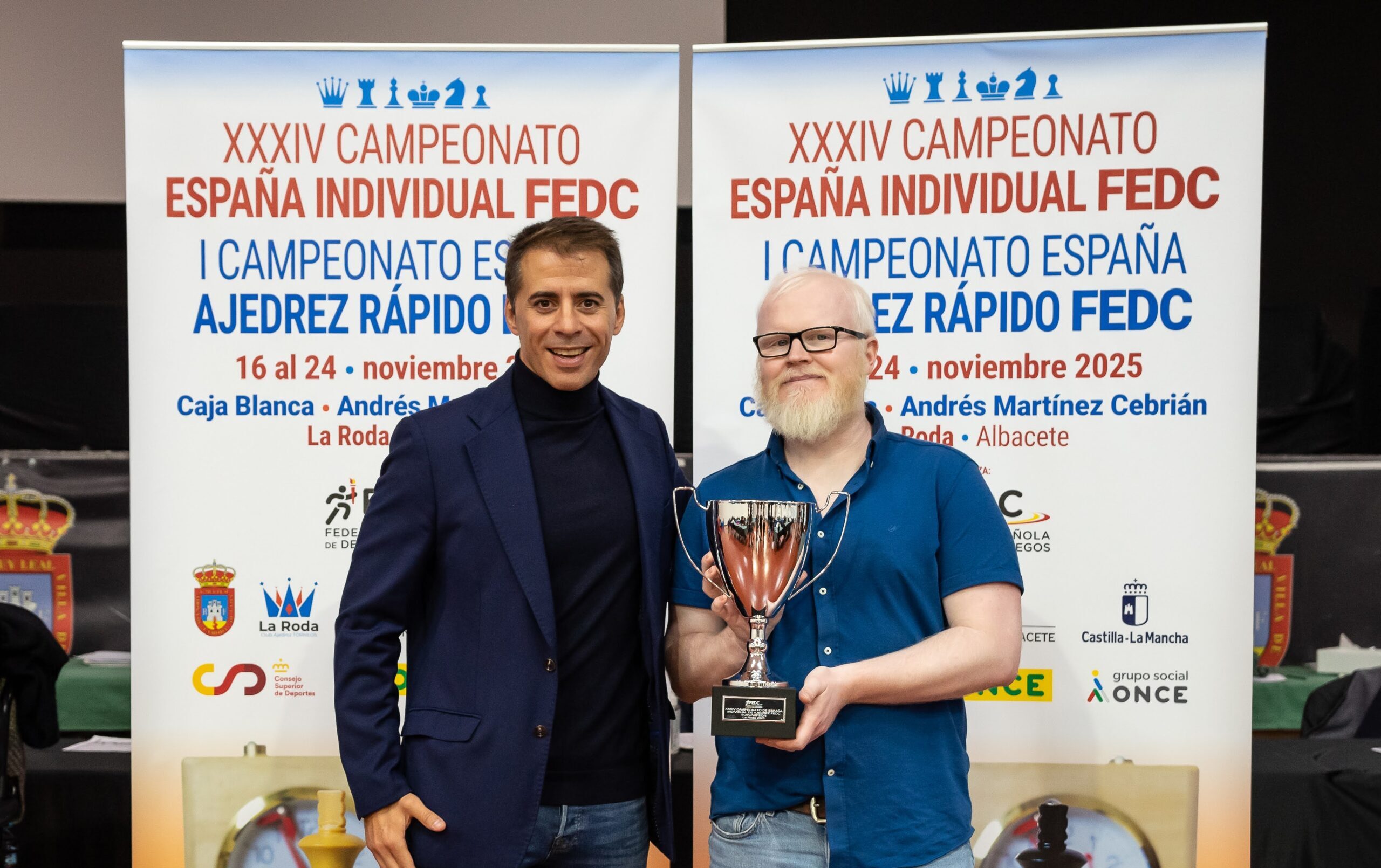 El regreso del Campeonato de España de la FEDC a La Roda ha dejado grandes momentos deportivos. José Manuel Vela Ignacio se proclamó doble campeón de España, triunfando tanto en ritmo clásico como en ritmo rápido. Le acompañaron en el podio del ritmo clásico Alejandro Martínez Colomar, segundo clasificado, y David Fernández Lago, tercero. Iraida Casadevall destacó como la mejor jugadora femenina del torneo.
