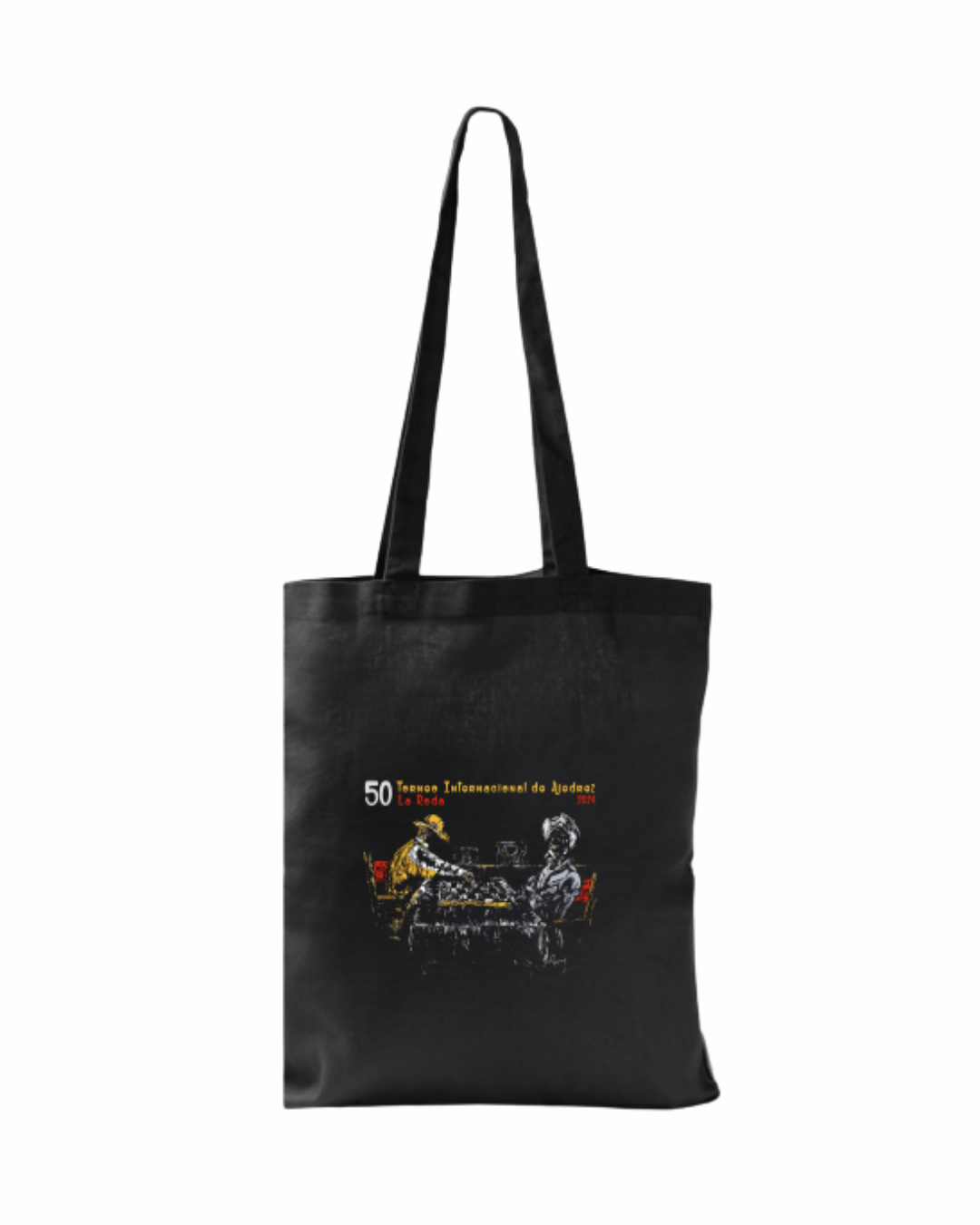 Totebag oficial del Torneo Internacional de Ajedrez de La Roda 50 Aniversario. Para jugadores y aficionados al ajedrez.